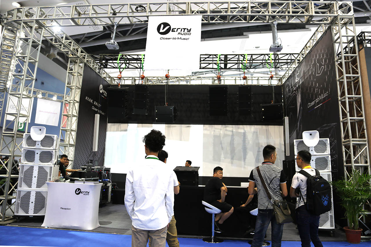During the four-day exhibition from May 10th – 13th , Verityaudio displayed a series of featured products, likes VOICE series passive full range speakers, MUSE/P series active full range speakers, AMBIENCE series column speakers, 6’’ coaxial C6 + SUB208S(dual 8’’) / SUB408S(quadruple 8’’) cinema system, IWAC series line arrays, MONSTER TOWER electronic tone reproduction system and so on. Their unique industrial designs, shocking dynamics and compact size gave customers a deep impression, help them derive lots of fresh inspiration for their project applications, will definitely let their business growth accelerated.